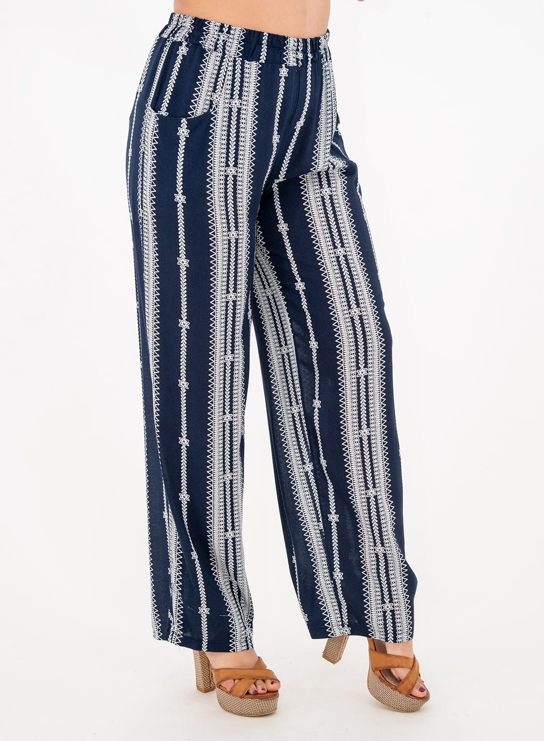Μπλε βαμβακερή παντελόνα με λάστιχο
