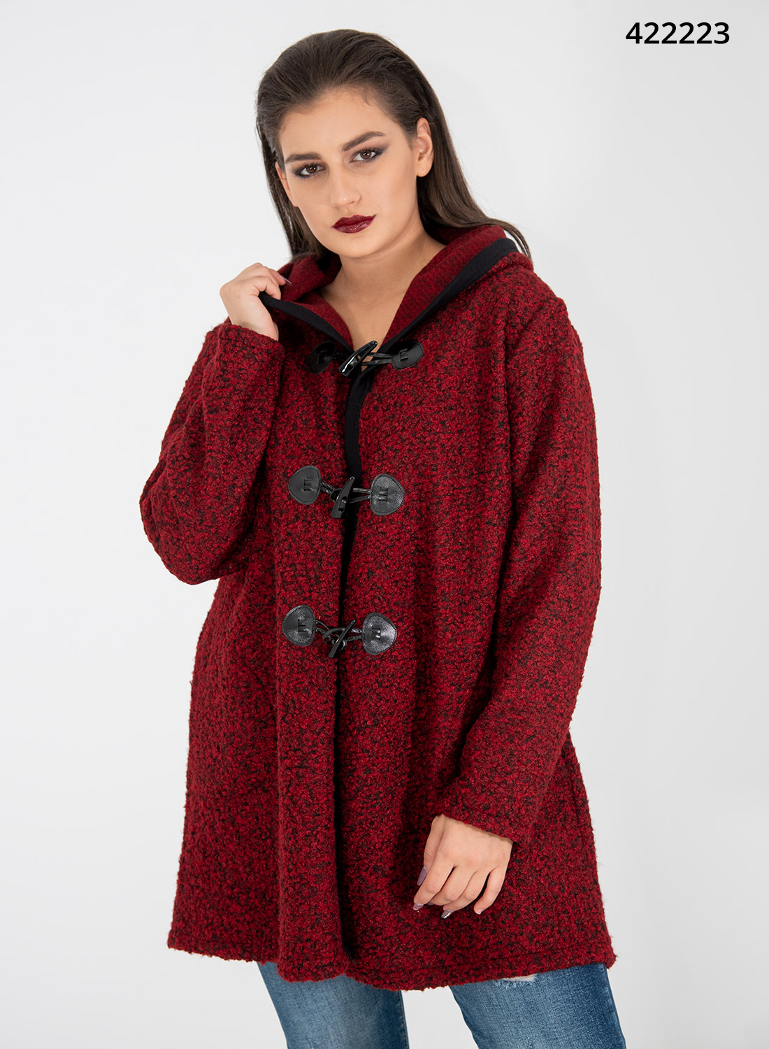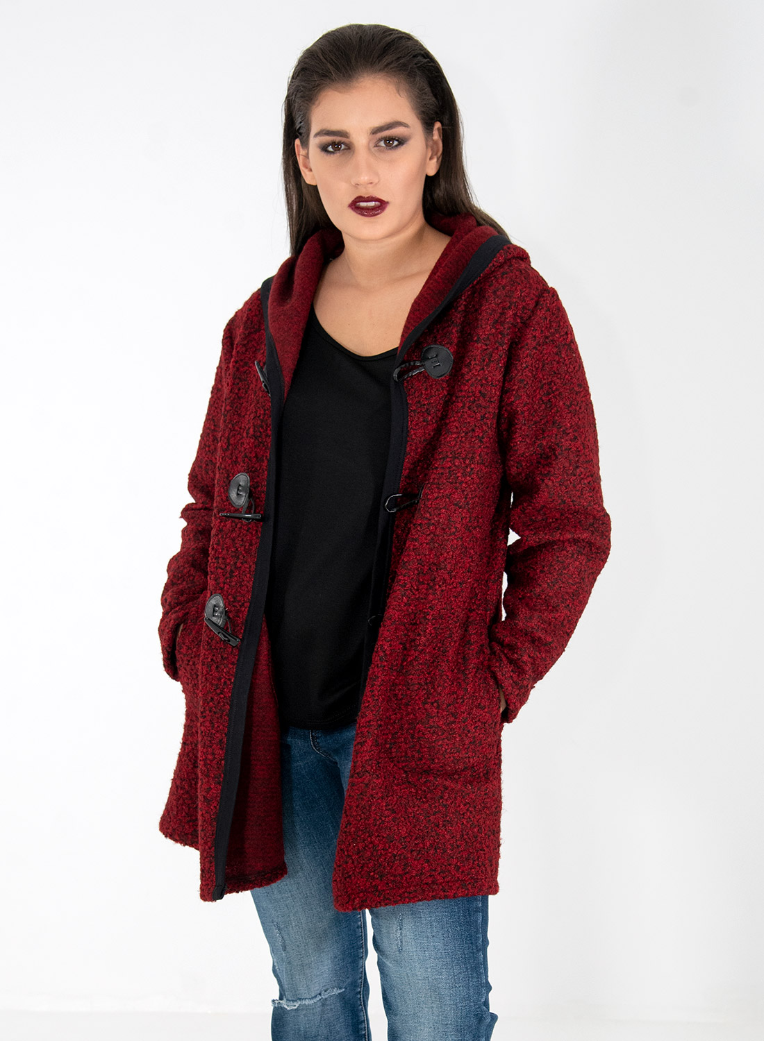Εντυπωσιακή δίχρωμη μπουκλέ ζακέτα με κουκούλα