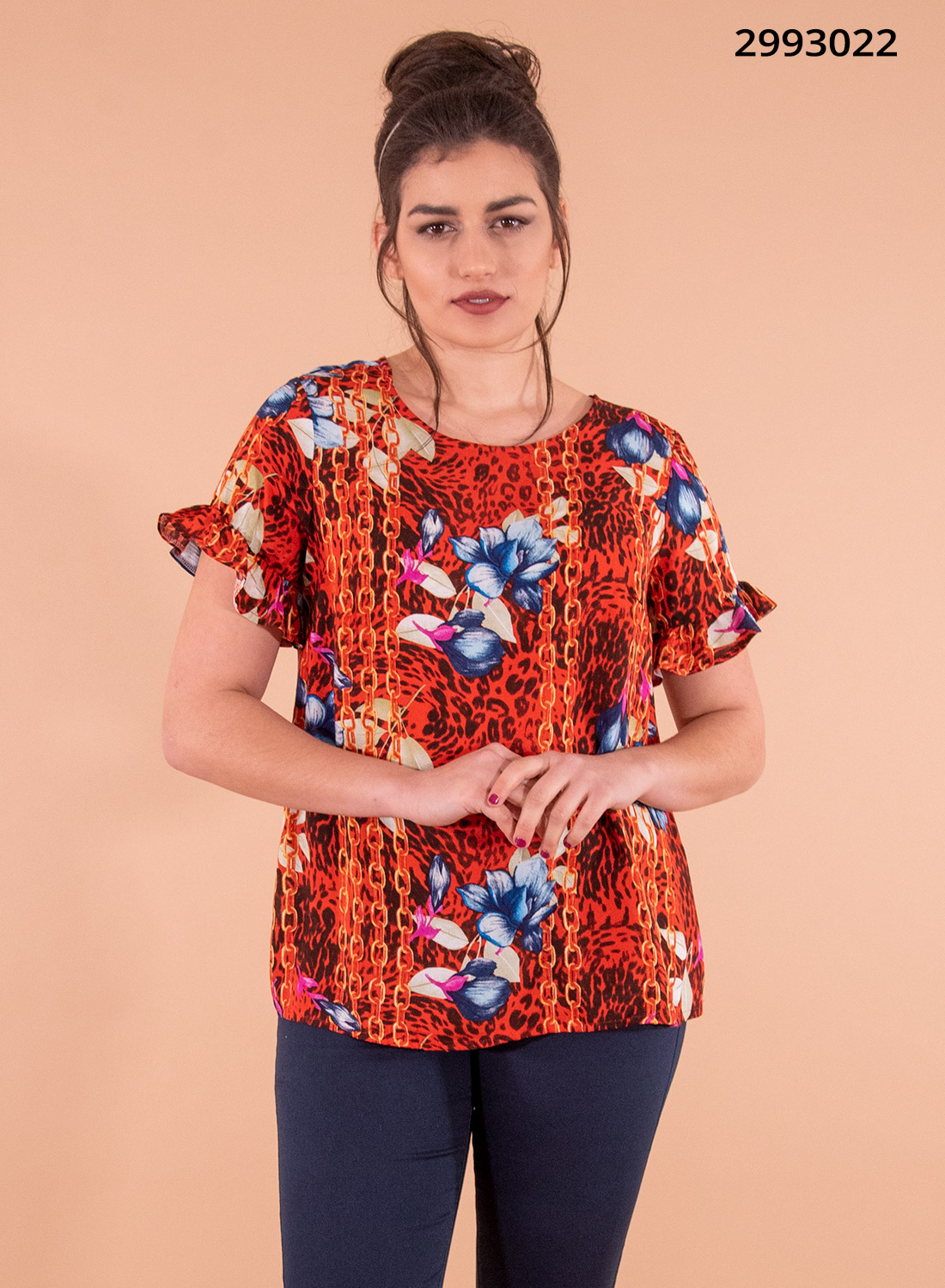 Εμπριμέ μπλούζα με εντυπωσιακή πλάτη